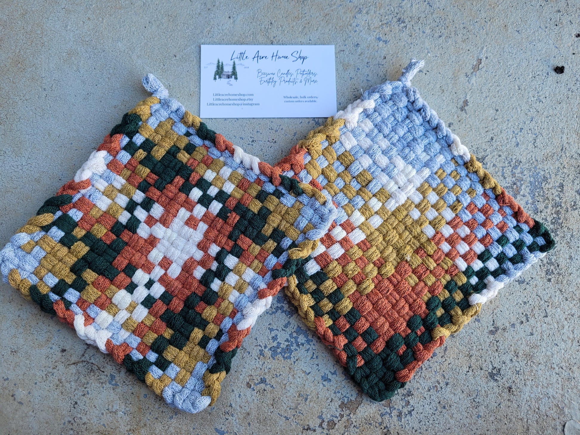 Wrap your hands in comfort with these traditional 6x6 potholders crafted from 100% cotton. Featuring a combination of green, winter white, spice, yellow, silver, each potholder offers substantial thickness for reliable heat protection in your kitchen. Perfect for adding a touch of warmth to your cooking space while keeping your hands safe. These versatile pieces blend timeless style with everyday functionality.